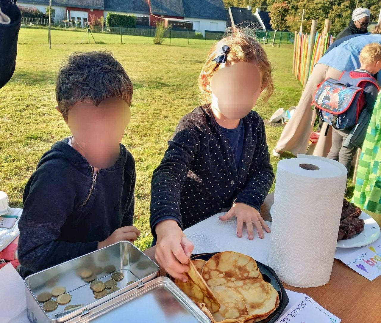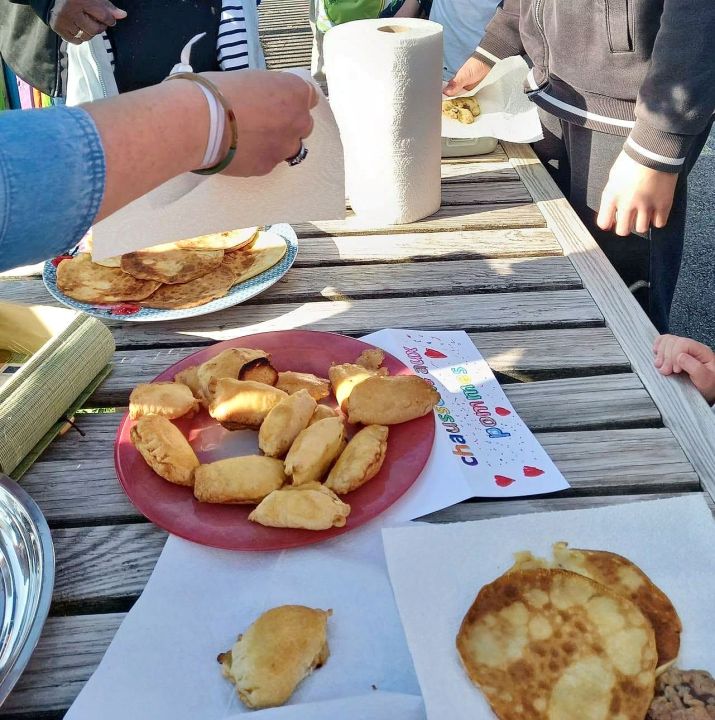 Ils se sont ensuite réunis dans la cour de l'école pour déguster les bonnes crêpes confectionnées par des parents et grands-parents.